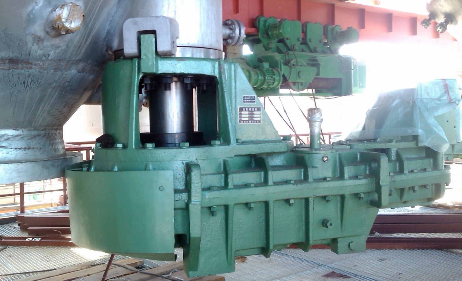 海洋鉆井平臺齒輪傳動(dòng)裝置,2004年取得了ABS和CCS船檢證書(shū),先后為原北方鉆井公司“渤海8號”、原南方鉆井公司“南海1號”及“南海4號”等平臺開(kāi)發(fā)生產(chǎn)了升降傳動(dòng)裝置和海水泵塔等,2011年為武漢船用機械有限公司配套研制生產(chǎn)了“自升式海洋鉆井平臺提升裝置”。